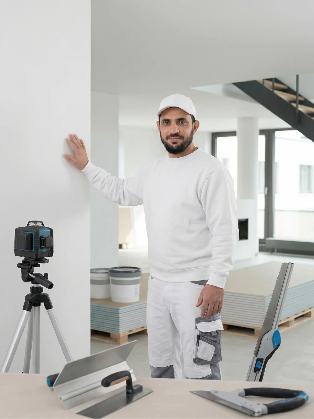 - Trockenbau: Flexible und effiziente Raumgestaltung mit modernen Trockenbausystemen für Wände und Decken. Von Ständerwänden über Vorsatzschalen bis zu abgehängten Decken.